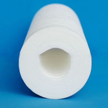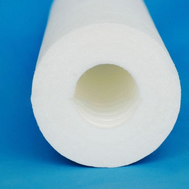 以聚丙烯为原料,经最新的熔喷、牵引、接收技术,使聚丙烯纤维依靠自粘合相互缠结形成三维曲径微孔结构,与传统织物和梳理成网非织造物中的纤维分布不同,具有更大的比表面积,更高的孔隙率,更细微的孔径,优良的过滤性能高于其他普通的过滤材料。由于纤径和密度在滤芯的直径方向上发生可控的变化,由此制成的滤芯成品将形成由内密而外松的多层梯度结构。